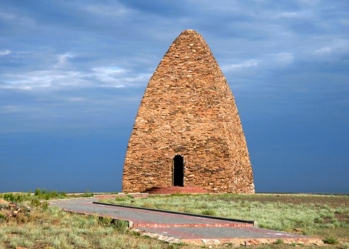 Thomas says that soon after this they came to a small, isolated hill on which there were many tombs, “some of considerable size, built of stone in a conical form, with a large chamber containing graves…The tombs are extremely curious and of a very ancient date.” The likelihood is that Thomas is describing the Mausoleum of Kozy Korpesh and Bayan Sulu, located 7 kms southwest from Tarlauly village, on the right bank of the Ayaguz river, 11 kms to the west of Tansyk station. This ancient mazar (mausoleum) commemorates the love between the beautiful Bayan-Sulu and her lover Kozy Korpesh, a kind of Kazakh Romeo and Juliet. It was built in the tenth century and is now a protected monument.