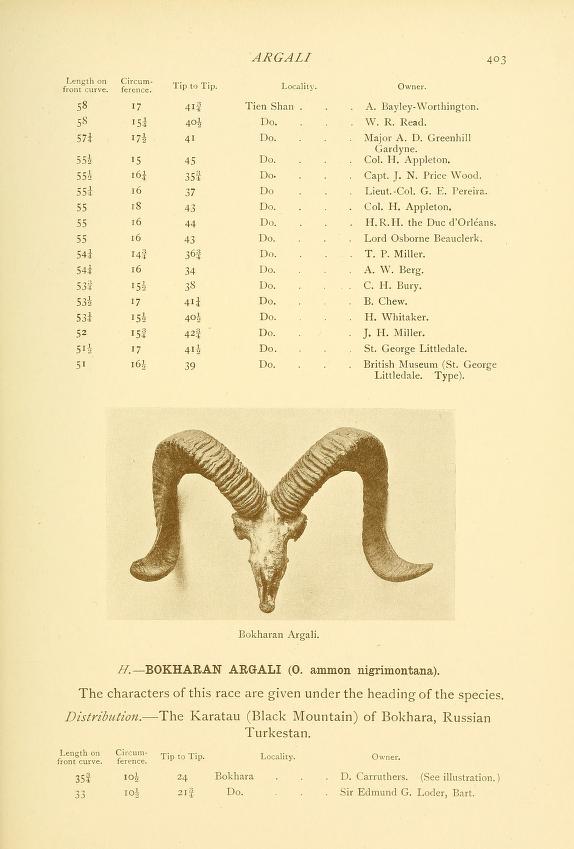 Second on the all-time list, with a length on the front curve of 58″ is W R Read, our man. I guess his trophy was re-measured on his return to the UK. I should add that Read also mentions that Raheem Lone visited his house in Shoreham, so my thought is that the latter completed the journey with Read from Kashmir all the way to Omsk in southern Siberia, afterwards travelling to England, before returning by sea to Kashmir. (Lone also travelled to China with the Roosevelts, but I will tell that story another time).