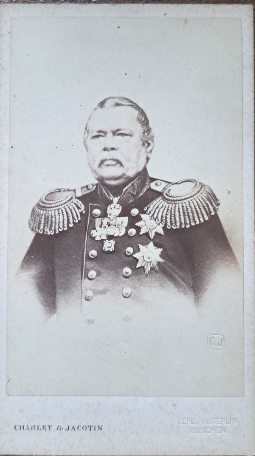 As for the CDV for General Muravyev, the photograph was taken in Paris by the famous French photographic company Charlet & Jacotin, which specialised in aristocrats and royals. Presumably it was taken in Paris in or before 1866, the year he died.